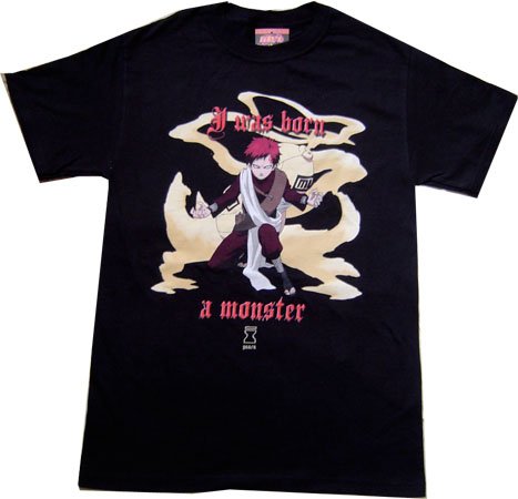 Licensed Naruto anime shirt featuring Gaara from the Sand Village. Front image. ADULT size. Black tee shirt.