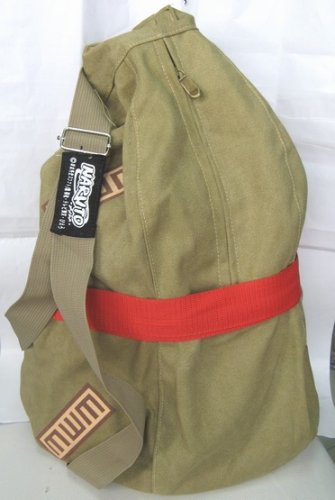 This is a backpack featuring the popular anime and manga series, Naruto! This backpack made in the shape of Gaara's Gourd! Now you can have your own gored as well to carry all of your personal needs?or sand. This backpack comes with two pockets; 1 main big pocket, and 1 small outside pocket. The bag is in a tanish kaki color with a red strap around it?s center. It comes with one adjustable strap so you can wear it across your chest. Perfect for school, work and everyday use! Dimension & Measurement: