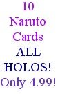 10 Holographic cards from the Naruto CCG. These cards are all legal in official tournaments, all in mint condition. Please note you are only getting the real, quality product if you are buying from Robot City Games.