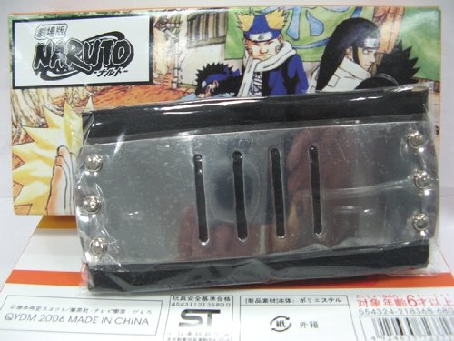 This headband / forehead protector is from popular anime/manga, Naruto. This headband is worn by ninja of the Land of Rain. Popular Naruto characters assosicated with the Land of Rain: Akatsuki leader - Pein. The band is navy blue, and is approx 32.5 inches x 3 inches. The metal protector itself is approx 6 inches x 2.5 inches.