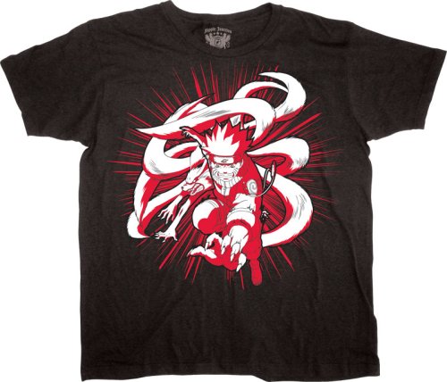 The Naruto shirt is black with the nine tailed fox design on the front.
