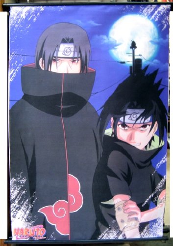 This wallscroll features Sasuke and Itachi Uchiha from the popular anime and manga series, Naruto. Sasuke and Itachi are estranged brothers, the last of the Uchiha clan of ninjas. The two are featured in this wallscroll against a moonlit sky. The wallscroll contains two hooks that enables you to hang it from any wall (using nails/push pins, etc.). This wallscroll is 60cm (24-inches) wide, and 90cm (36-inches).