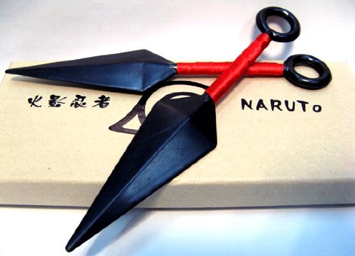 This is a set of two small sized Kunai with red wrappings. The kunai come in a collectible box featuring the Konoha leaf from the popular anime series Naruto, on the lid. The Kunai are approximately 6 inches long. Kunai - is the basic weapon used by many ninjas in Naruto. Most ninjas you see in Naruto will be carrying at least one or two of these handy daggers. It's an all purpose weapon, and is used frequently in battle. Almost all shinobi prefer to enter battle with this, as its handy uses can come in crucial times.