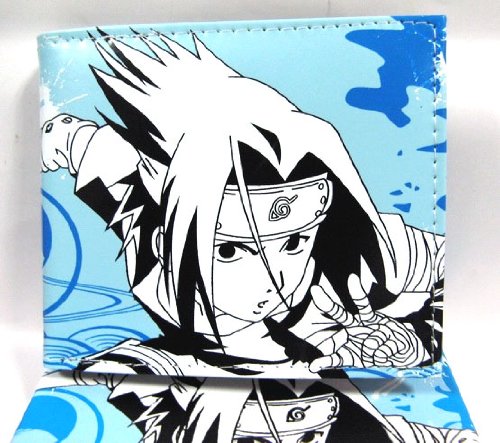 This wallet is from the popular anime and manga series, Naruto! This wallet features the popular and main character, Sasuke Uchiha! On the front of this wallet, Sasuke is shown in his fire breath pose. On the back of this wallet, Sasuke can be seen holding a Kunai. In between of the two panels, it features the Uchiha Clan's crest. The colors of this wallet is light blue, blue, black and white. The pattern featured on this wallet is of waves light pictures. The inside of this wallet is black. It also has 7 pockets; 2 bills pockets, 4 card pockets and 1 ID window pocket.
