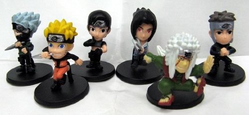 This is a 6 piece mini figure set from the popular anime and manga series, Naruto! This set features several prominent Naruto characters as they appear in the recent Shippuden arc. The set includes - Naruto, Sasuke, Sai, Kakashi, Jiraya, and Yamato. Each mini figure stands about 2-inches tall and comes with their own stand. It is a great set for any fan of the series to set in a display case, on a desk, or even next to your computer monitor.