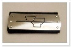 This headband / forehead protector is from popular anime/manga, Naruto. This headband is worn by the Akatsuki member, Deidara. The band is black, and is approx 32.5 inches x 3 inches. The metal protector itself is approx 6 inches x 2.5 inches.