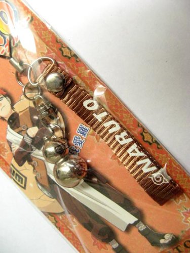 This is phone strap and charm from the popular anime and manga series, Naruto. The phone strap is about 3-inches long and is red with the inchesNaruto inches series title printed on it in yellow. The silver-colored charm is about 1-inch long of Gaara's gourd.