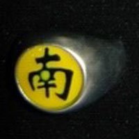 This is a ring from the popular anime and manga series, Naruto! This ring style is worn by the popular villain organization, the Akatsuki. The is a replica ring worn by, Kisame. His ring bears the kanji minami meaning south. The ring is silver-colored with a yellow/orange color centerpiece. The size of this ring varies from an approximate ring size 9-10. It can be adjusted slightly smaller.